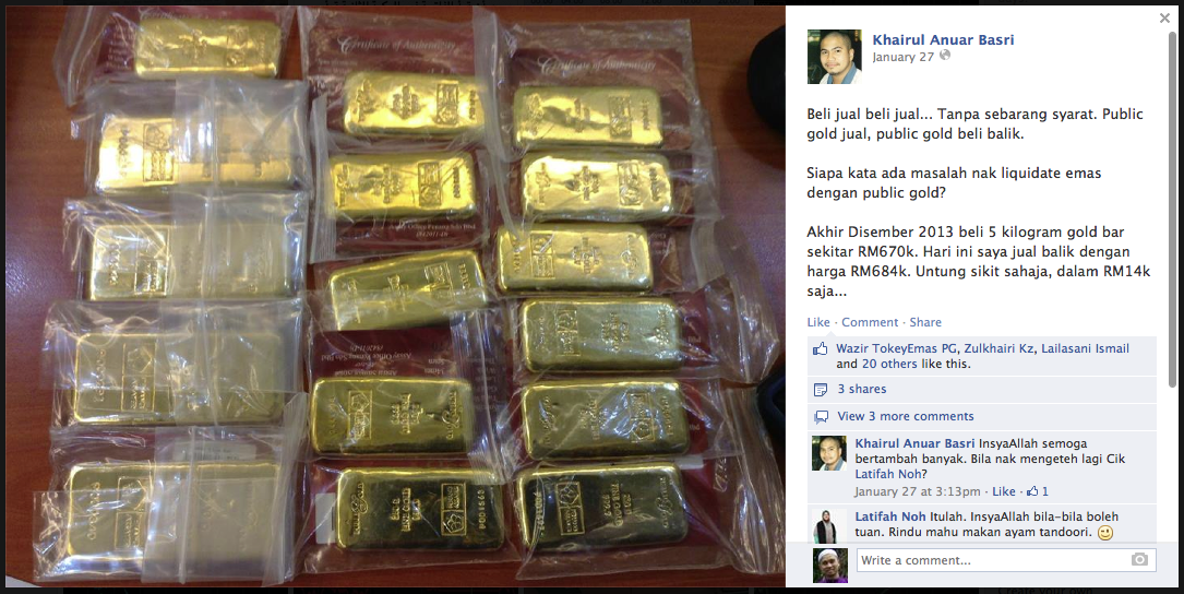 Jualan balik emas Public Gold secara besar-besaran oleh sahabat saya tanpa sebarang masalah dari sudut pembayaran daripada Public Gold.