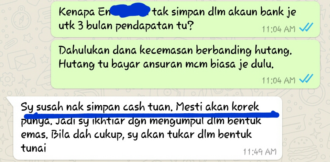 emas sebagai dana kecemasan elak kebocoran wangIni masalah kebanyakkan orang bila simpan duit dalam akaun bank, termasuk saya. Simpan, simpan, simpan, lepas tu rasa nak 'korek' semula.