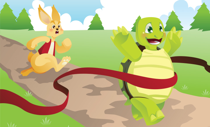 arnab-dan-kura-kura-02Walaupun perlahan, akhirnya siapa yang "konsisten" juga akan menang!