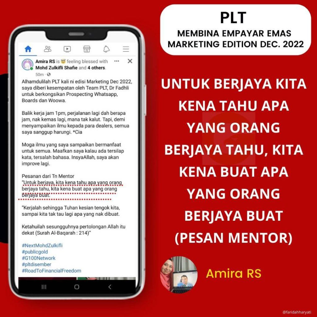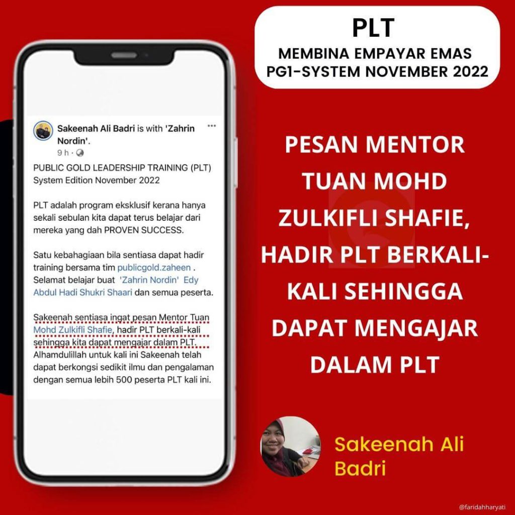PLT (PG Leadership Training) merupakan pelatihan inti yang dimulai pada tahun 2016. Pelatihan ini telah terbukti membantu para penabung emas yang kami bimbing untuk meraih Kebebasan Finansial ("tanpa kerja, tanpa uang") hanya dalam waktu 3 - 5 tahun.