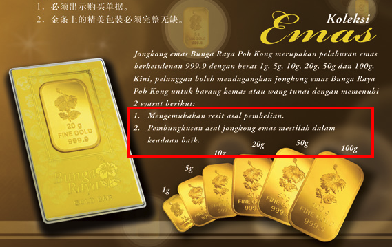Syarat yang diletakkan oleh kedai emas Poh Kong kalau nak jual balik emas tersebut.