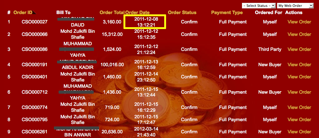 Sebelum Disember 2011 dulu, memang dealer susah keep track jualan sebab ordering system dulu adalah manual. Samada call, sms, ataupun email. Ordering system dulu agak kelam kabut. Banyak kes saya order melalui email dan sms tapi Public Gold tak keluarkan Sales Order hinggalah saya buat follow-up. Jadi bila terima komisyen, dealer terimalah seadanya. Kalau dealer tak rekodkan jualan secara peribadi, memang tak boleh trace kalau-kalau ada komisyen yang tertinggal.