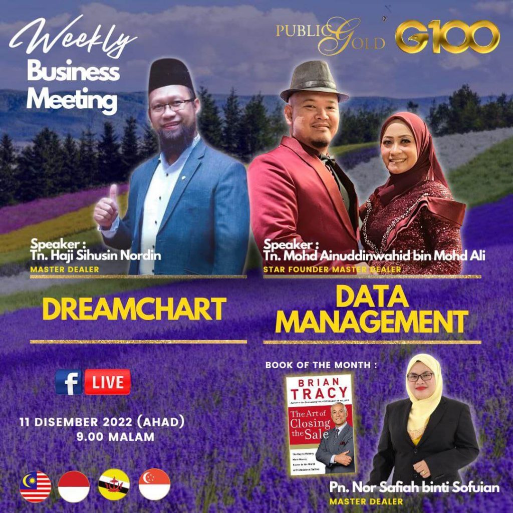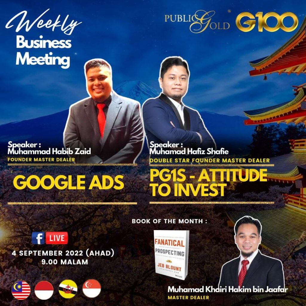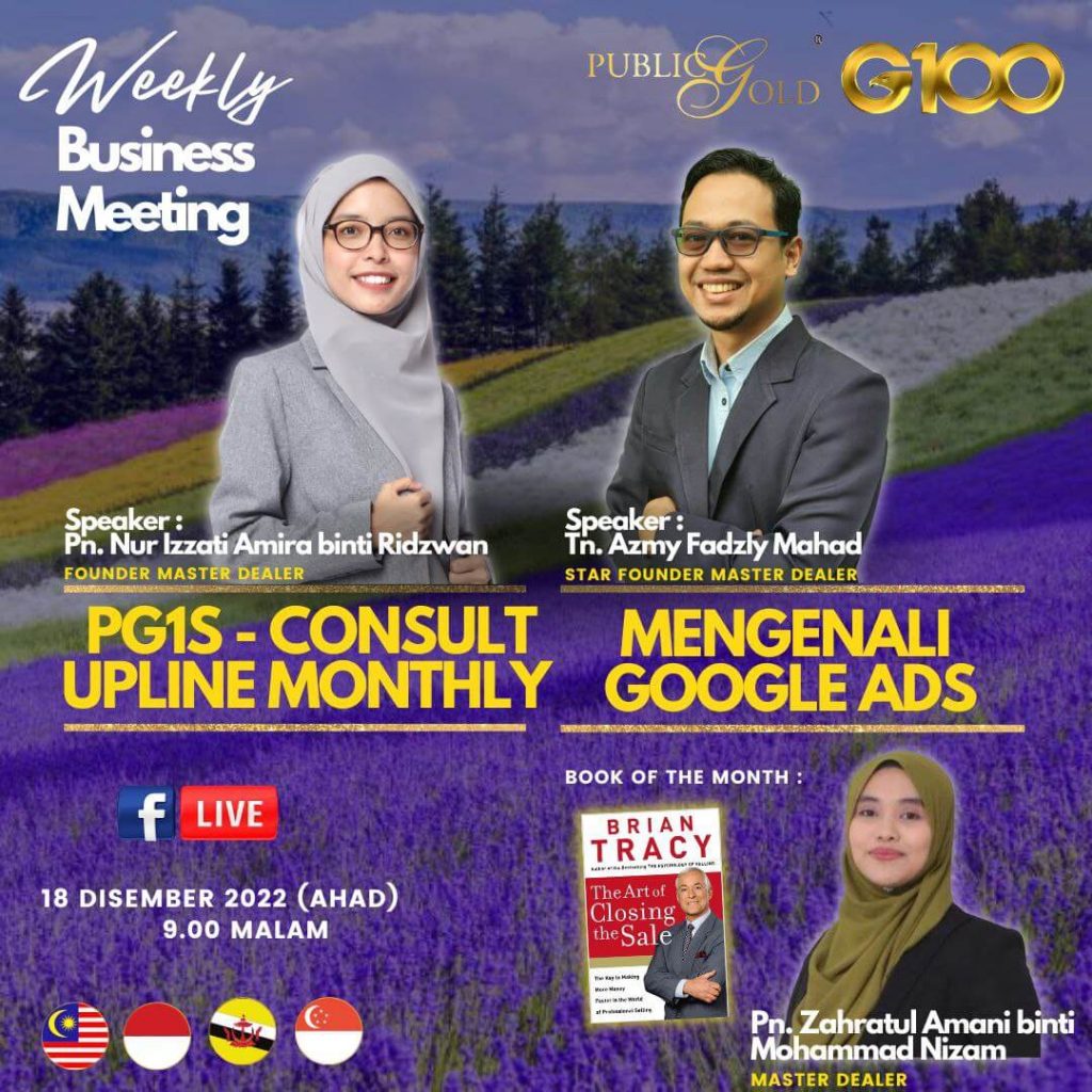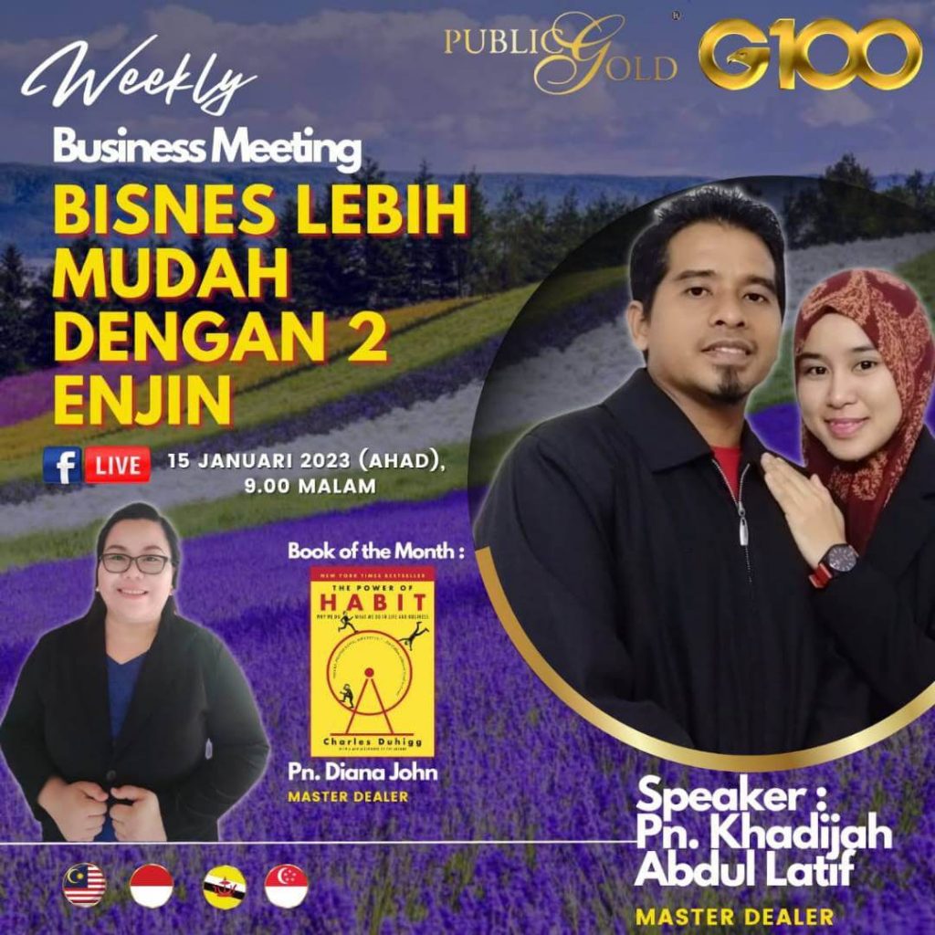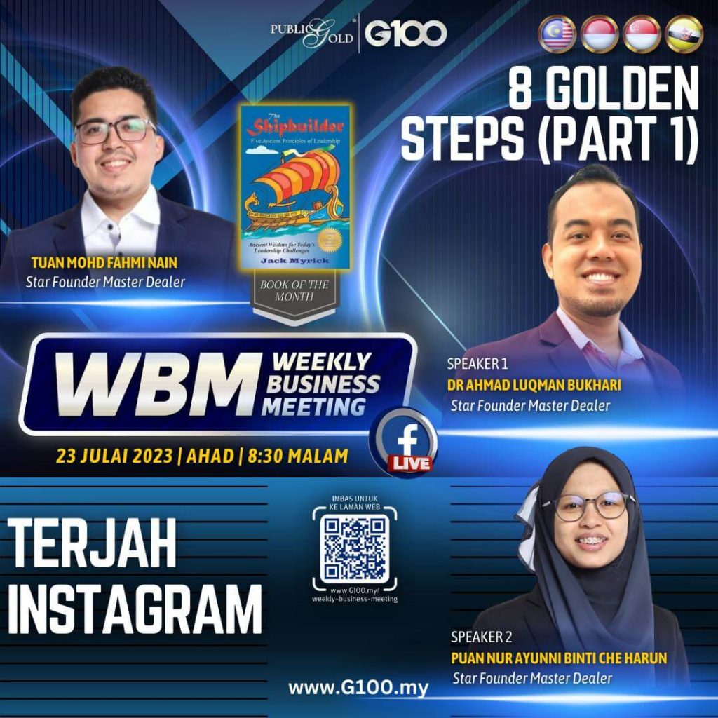 Peluang dapatkan input terkini, associate sesama team G100 yang positif, dan rungkaikan sebarang persoalan tentang bisnes setiap minggu supaya sentiasa bermotivasi.