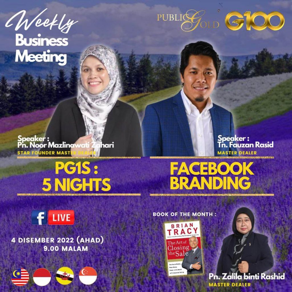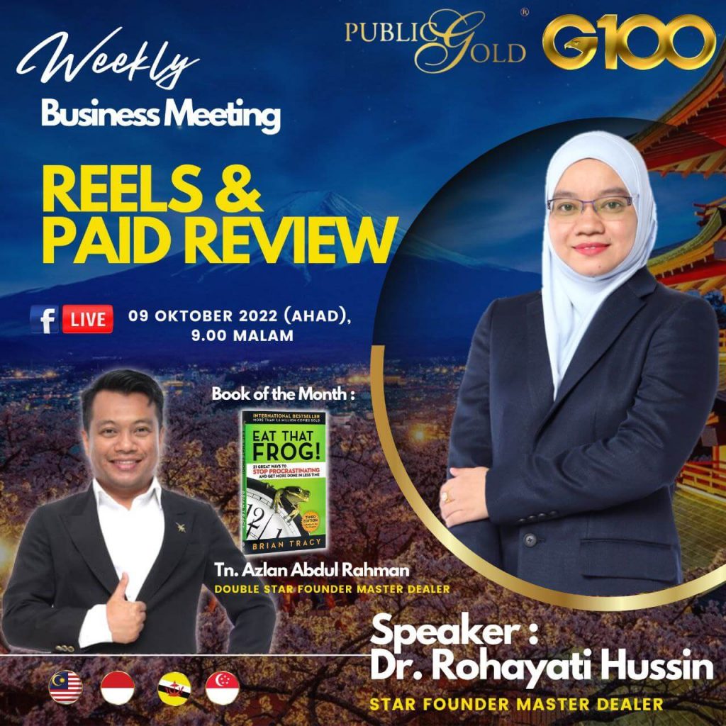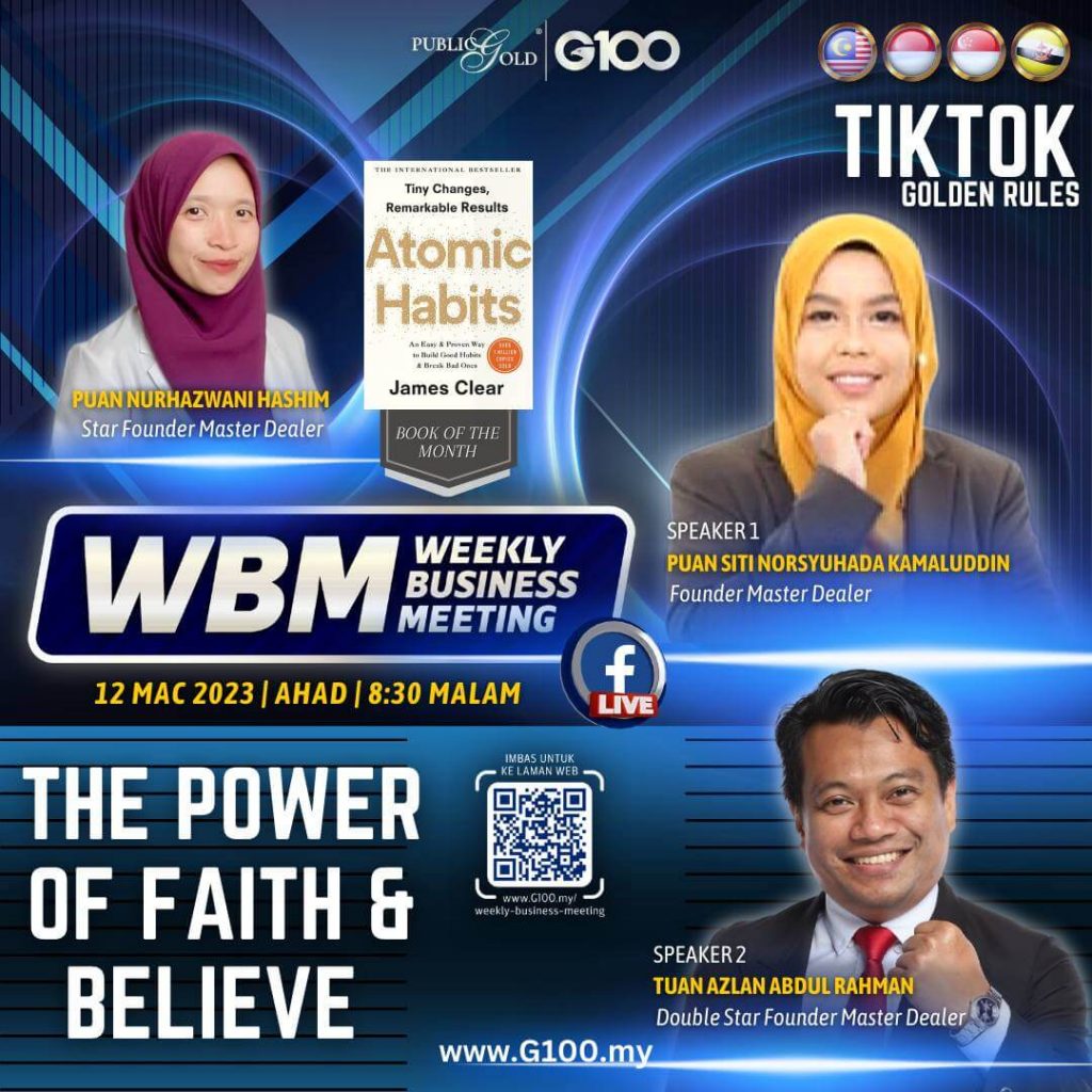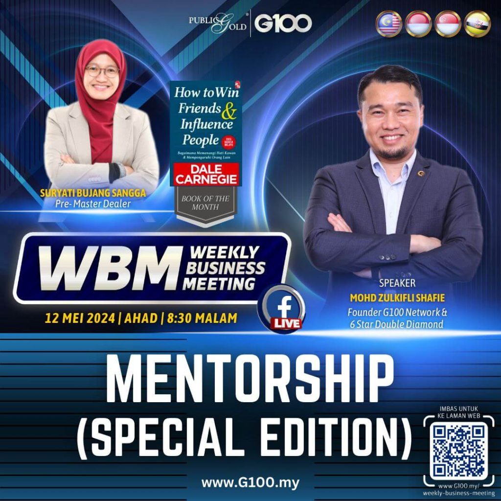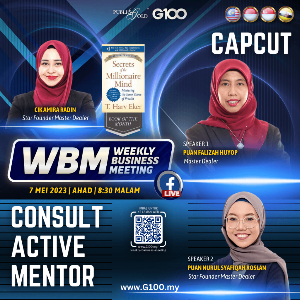 Peluang dapatkan input terkini, associate sesama team G100 yang positif, dan rungkaikan sebarang persoalan tentang bisnes setiap minggu supaya sentiasa bermotivasi.