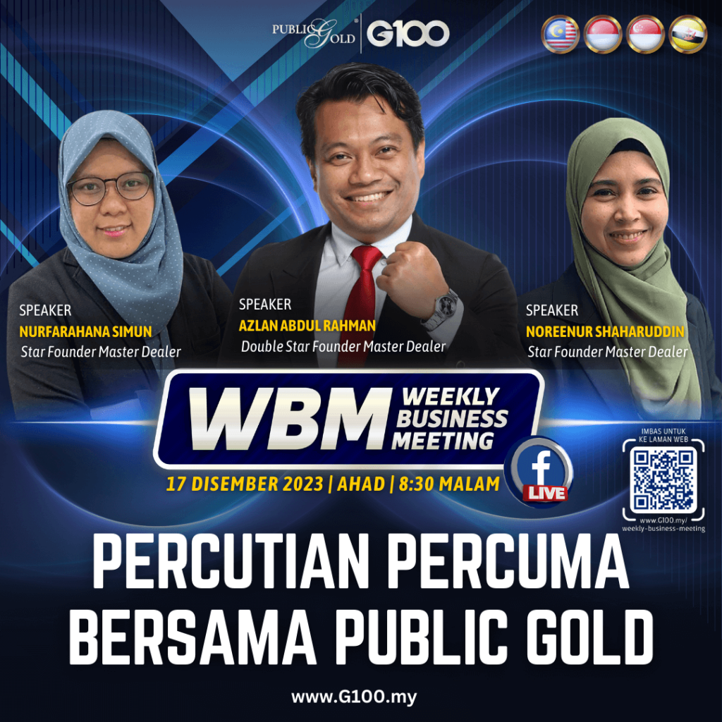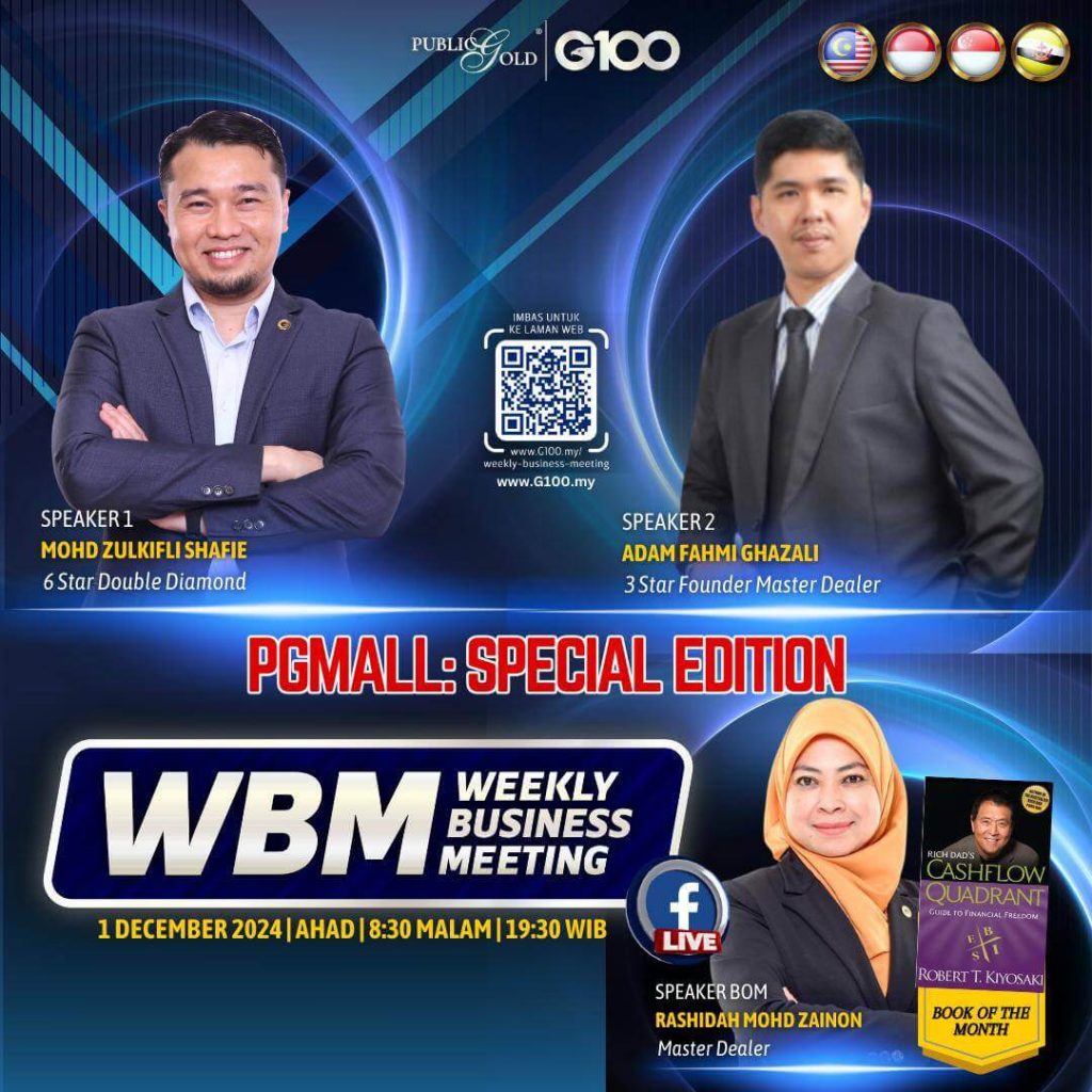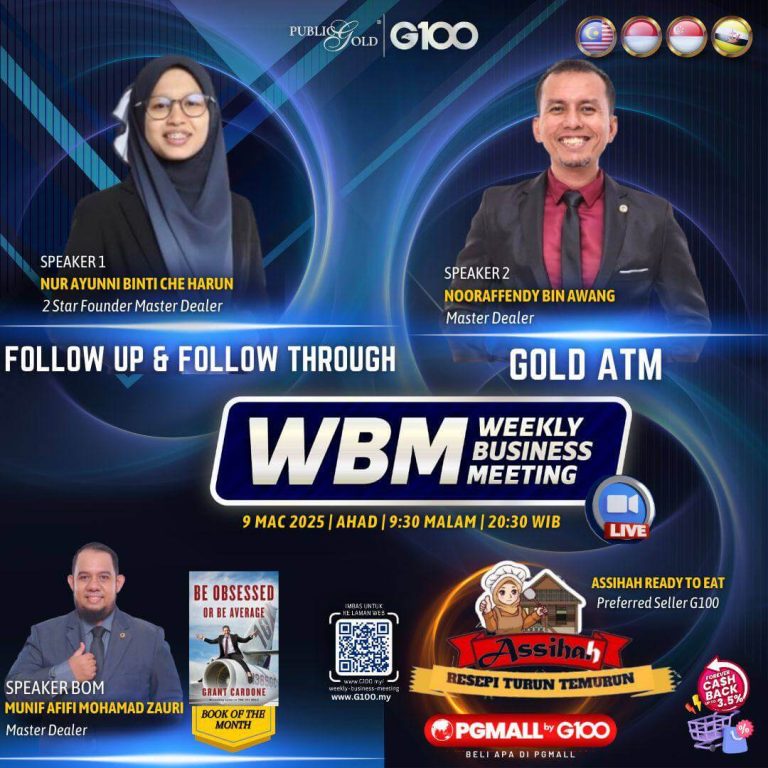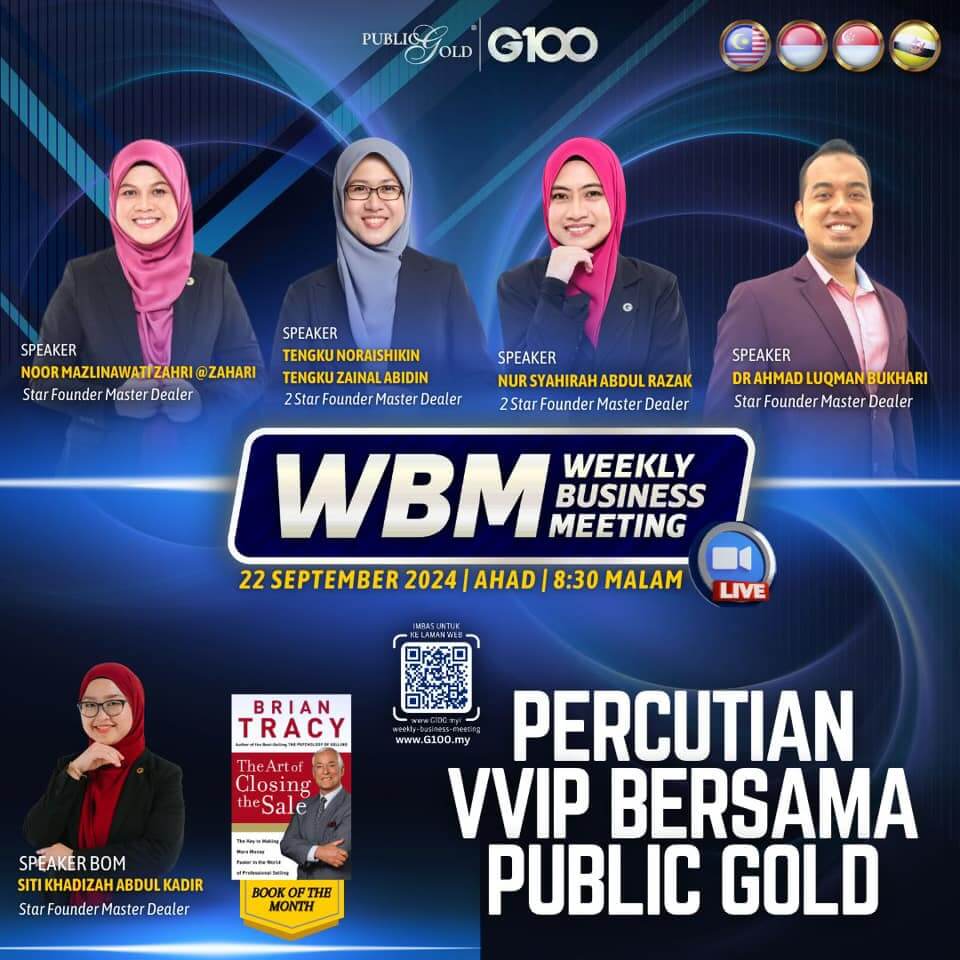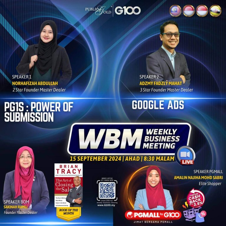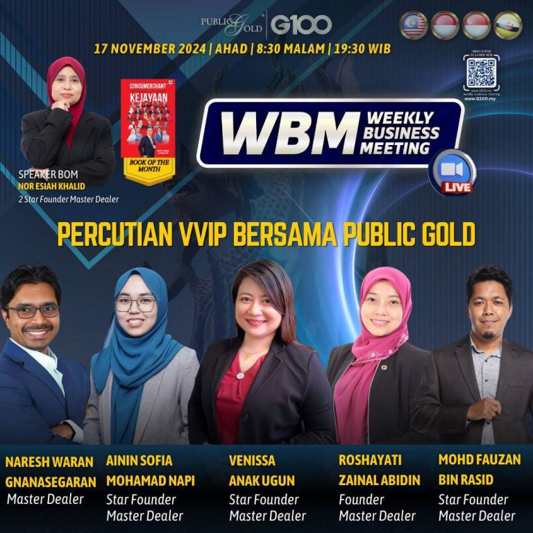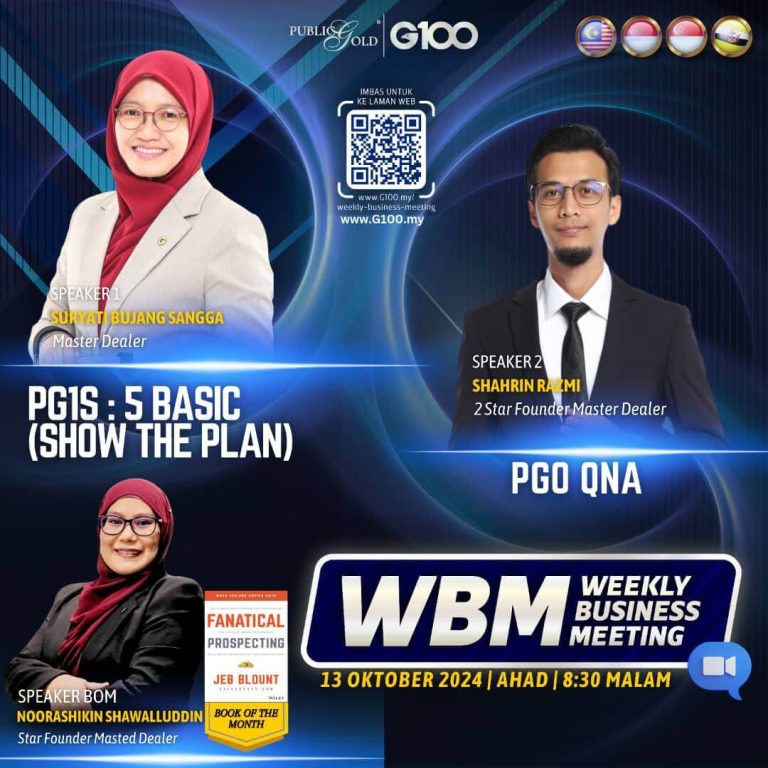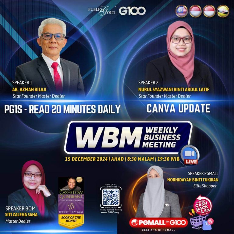 Weekly Business Meeting (WBM) yang diadakan setiap hari Ahad merupakan program latihan mingguan dalam bentuk perkongsian ilmu dan perkongsian update terkini tentang perkembangan bisnes Public Gold.