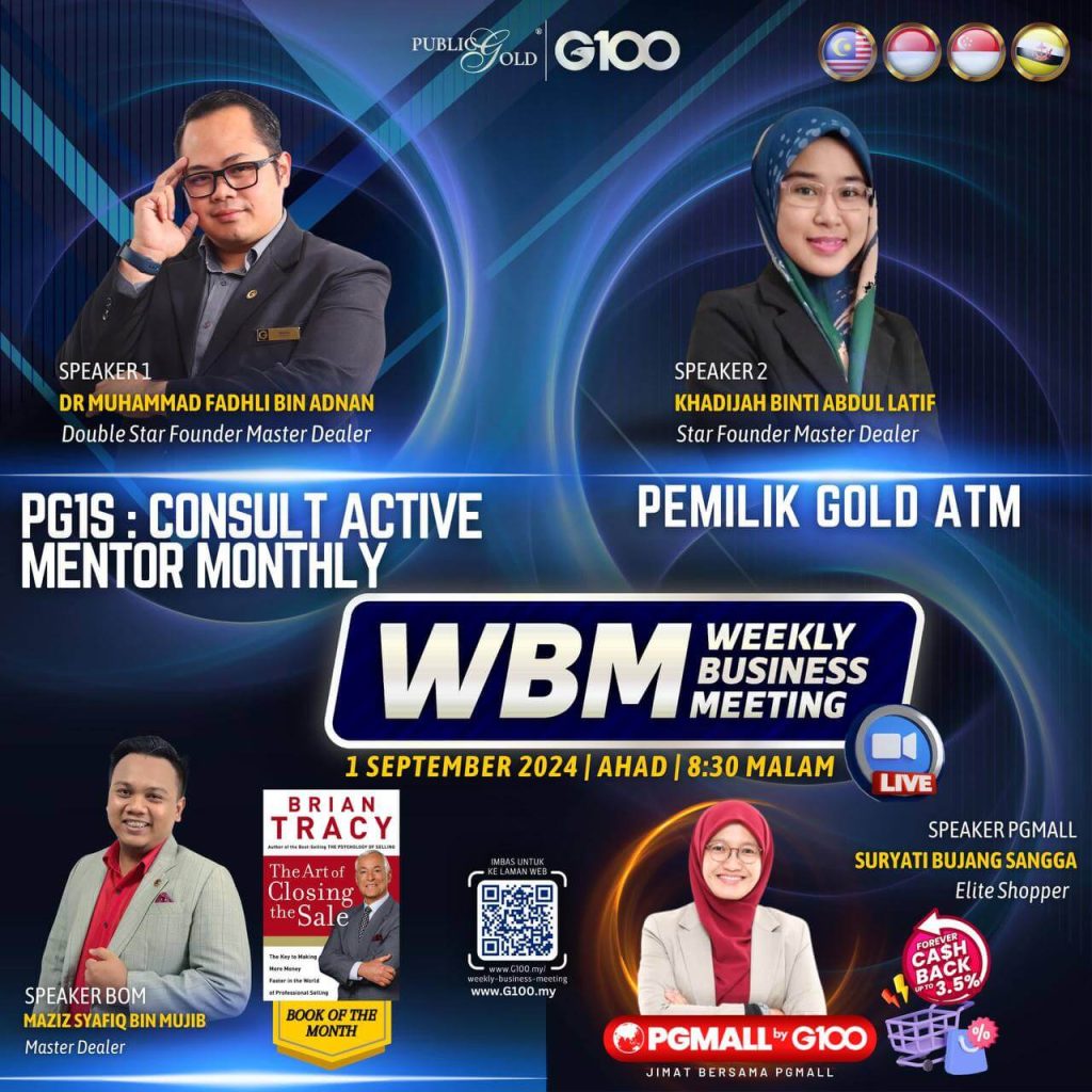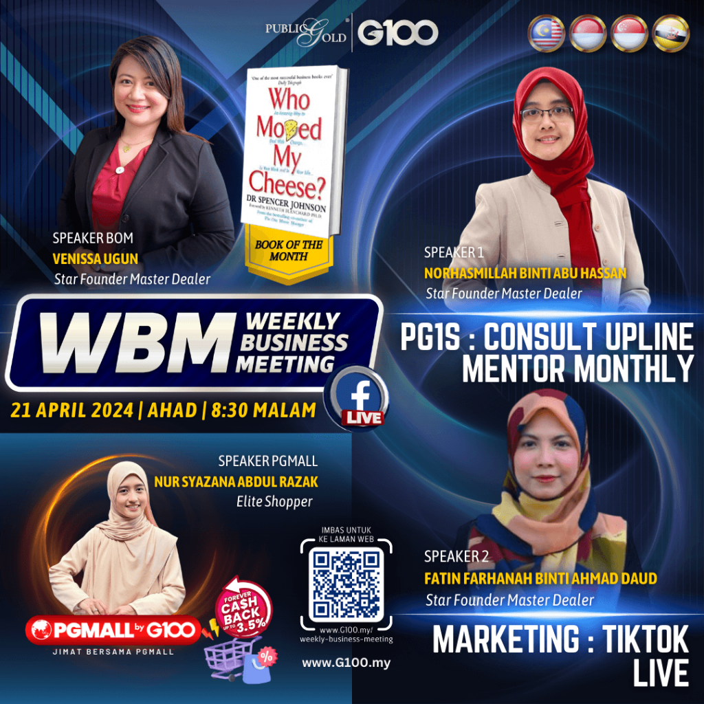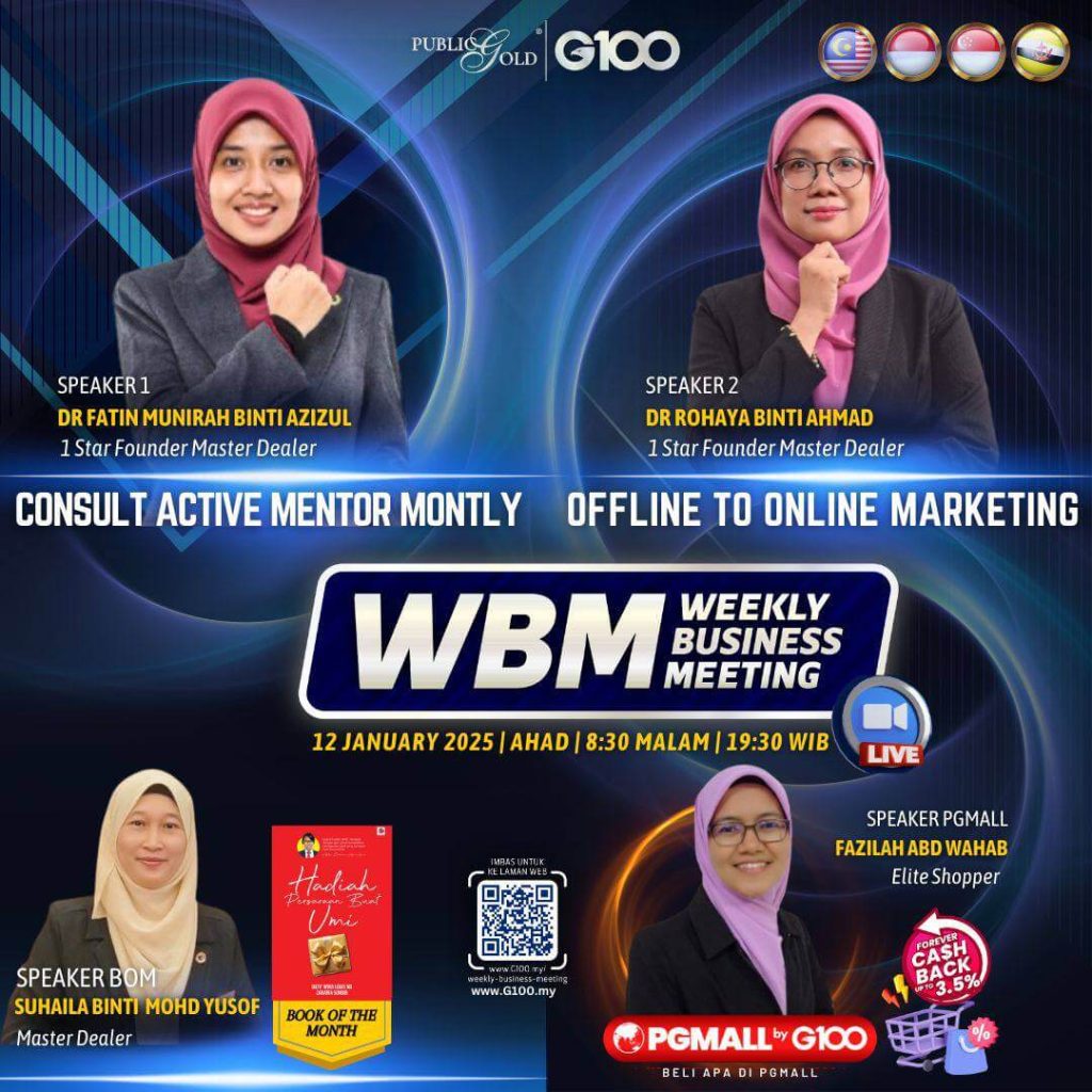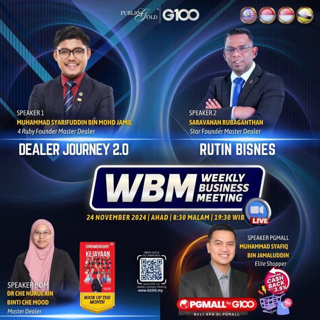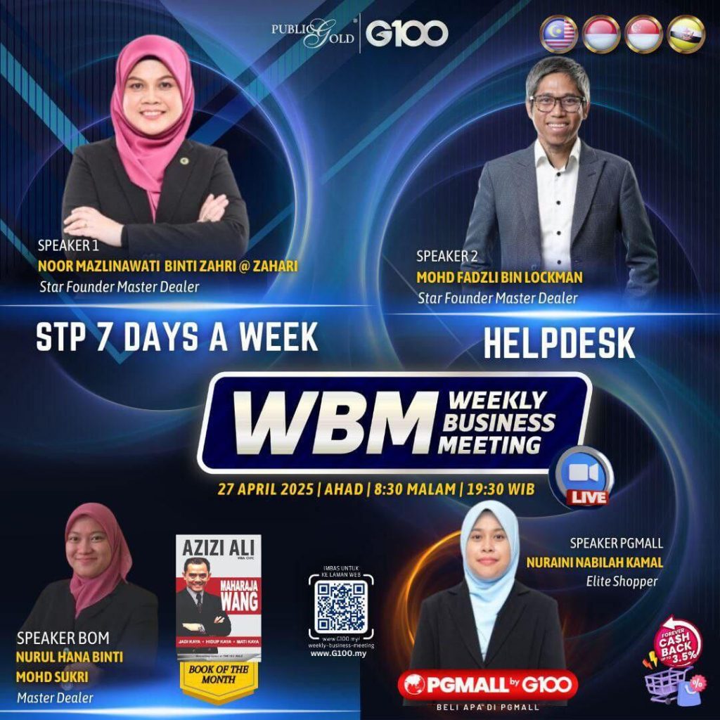 Weekly Business Meeting (WBM) yang diadakan setiap hari Ahad merupakan program latihan mingguan dalam bentuk perkongsian ilmu dan perkongsian update terkini tentang perkembangan bisnes Public Gold.