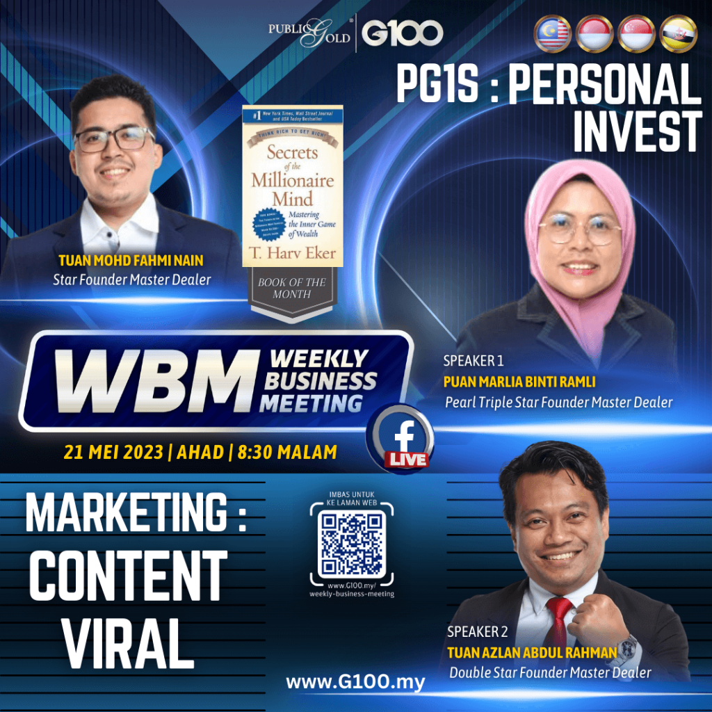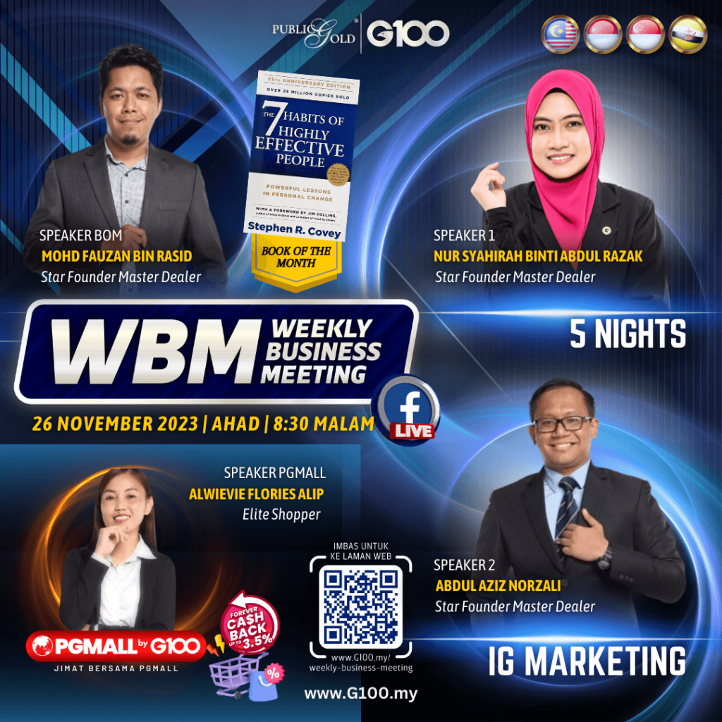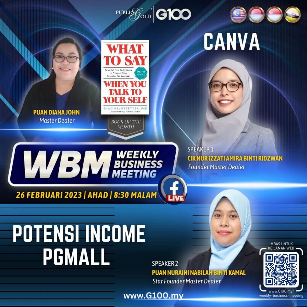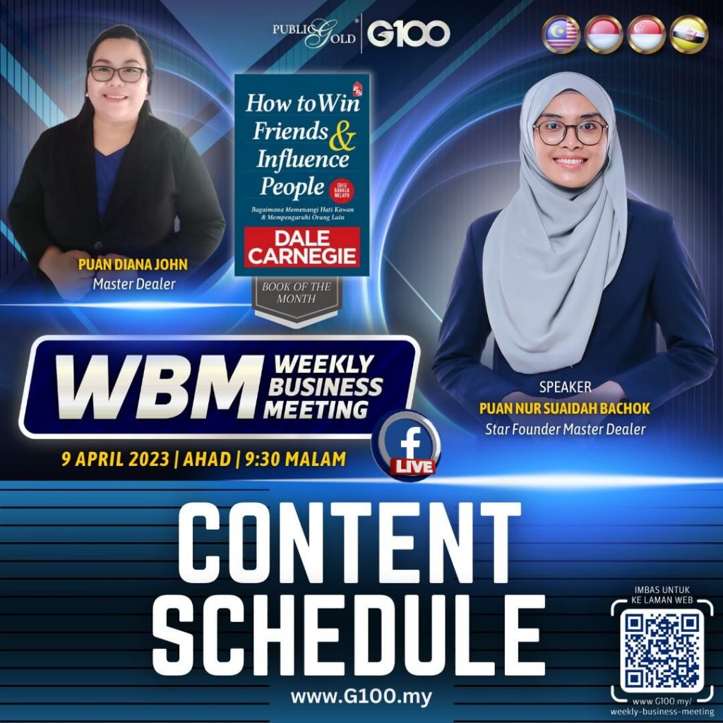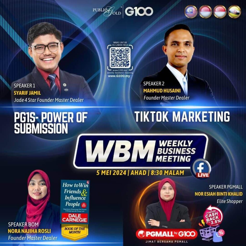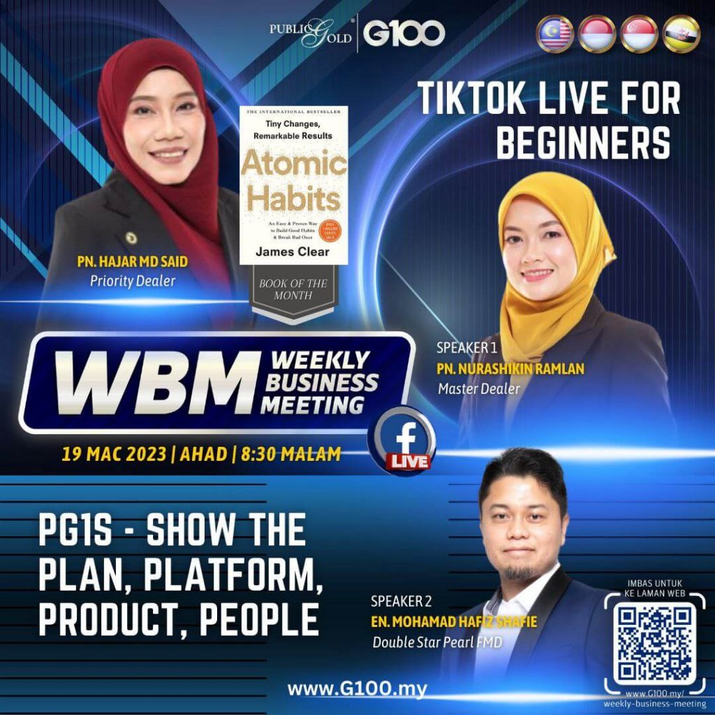 Weekly Business Meeting (WBM) yang diadakan setiap hari Ahad merupakan program latihan mingguan dalam bentuk perkongsian ilmu dan perkongsian update terkini tentang perkembangan bisnes Public Gold.