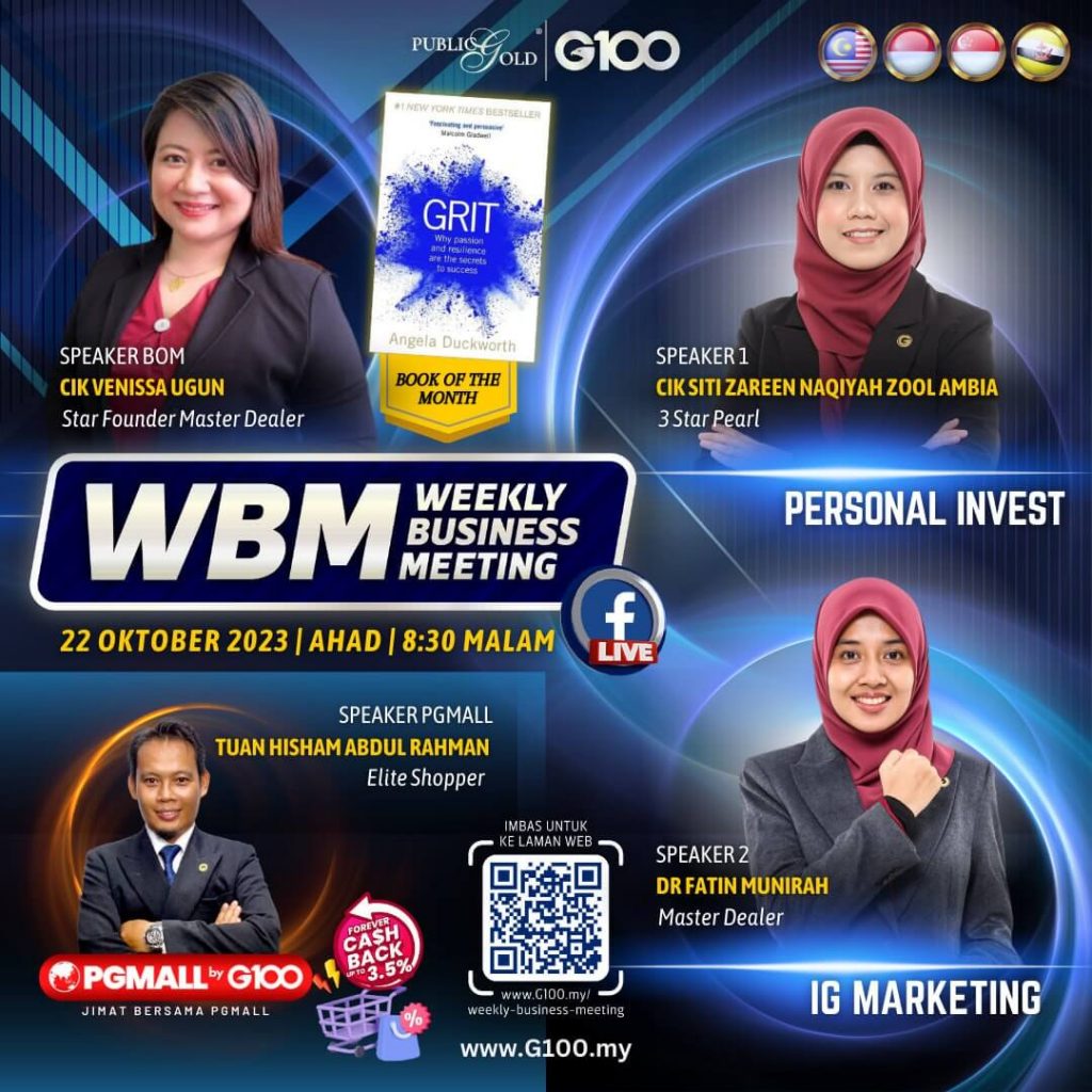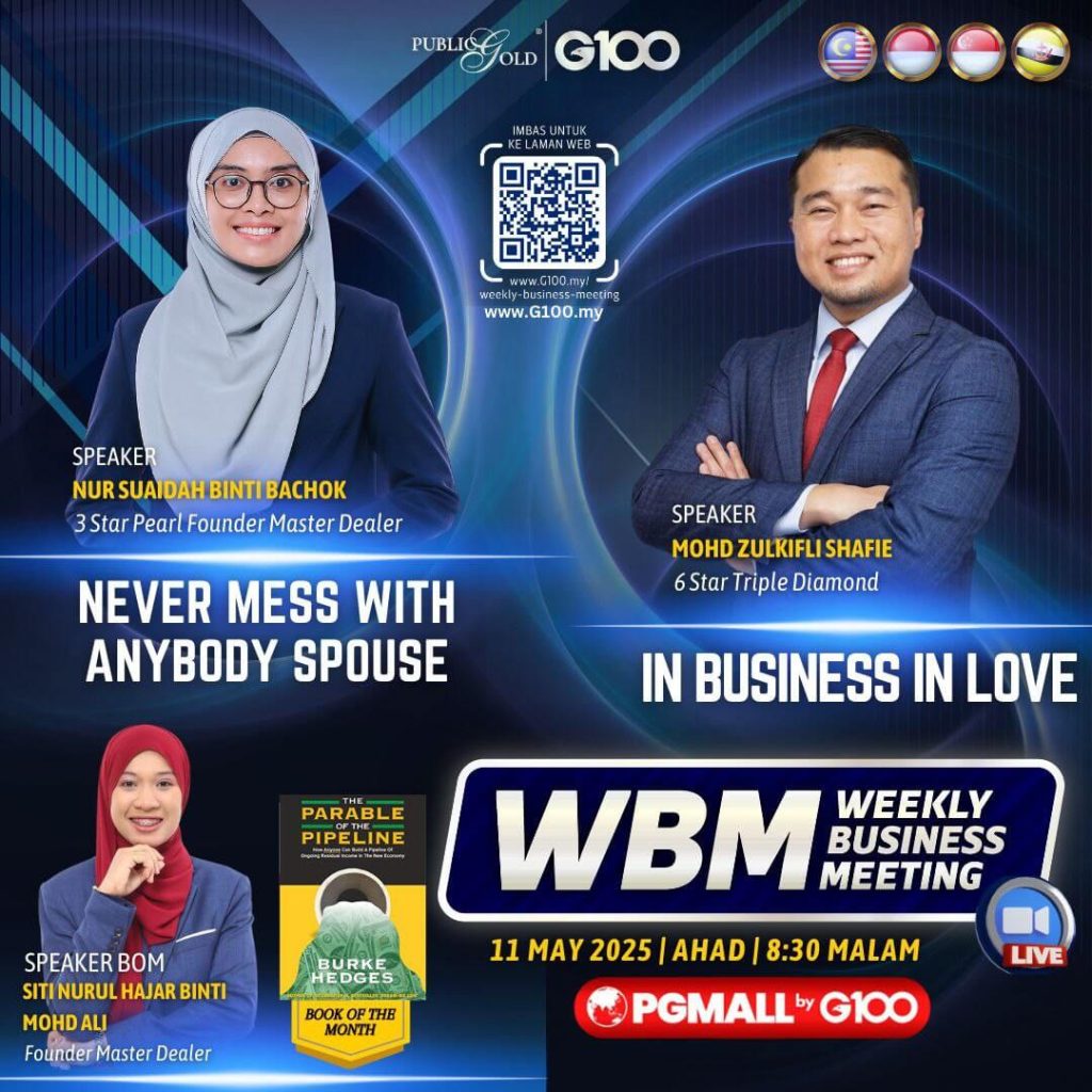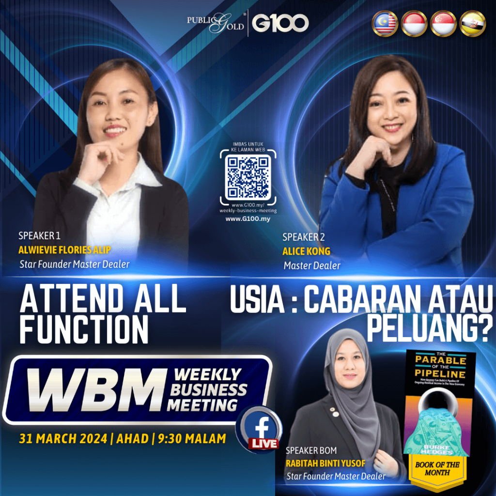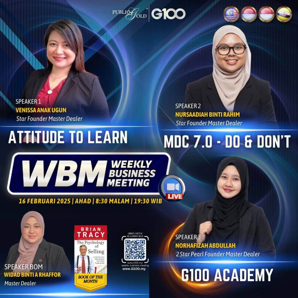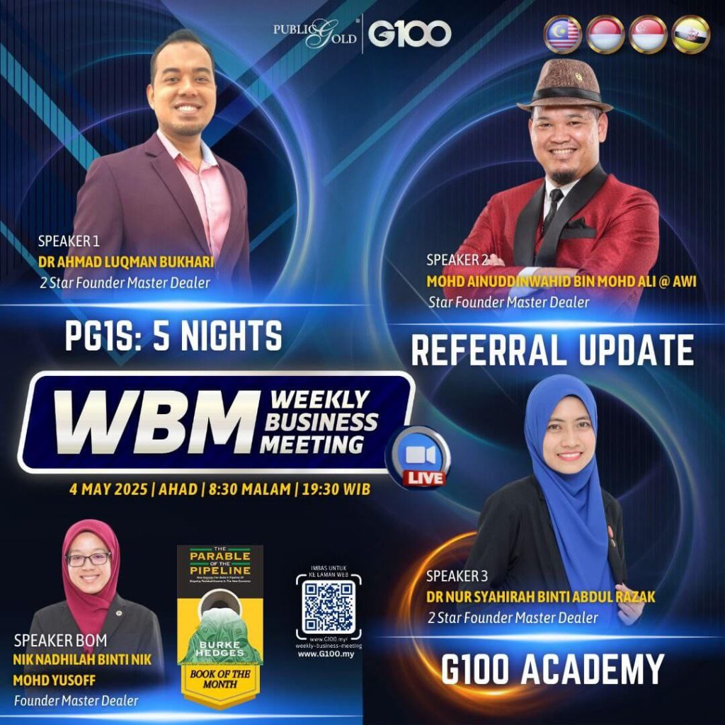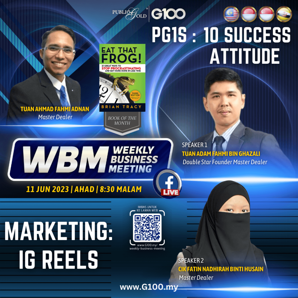 Weekly Business Meeting (WBM) yang diadakan setiap hari Ahad merupakan program latihan mingguan dalam bentuk perkongsian ilmu dan perkongsian update terkini tentang perkembangan bisnes Public Gold.