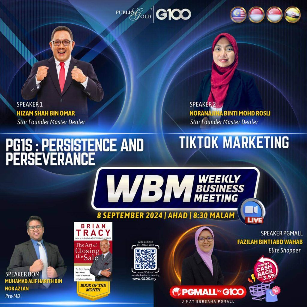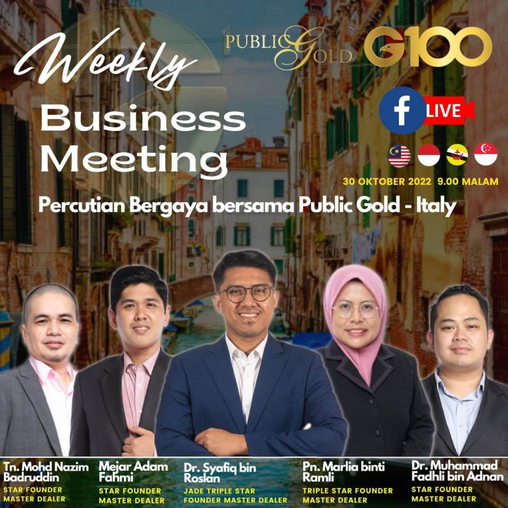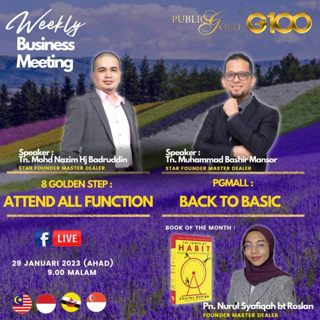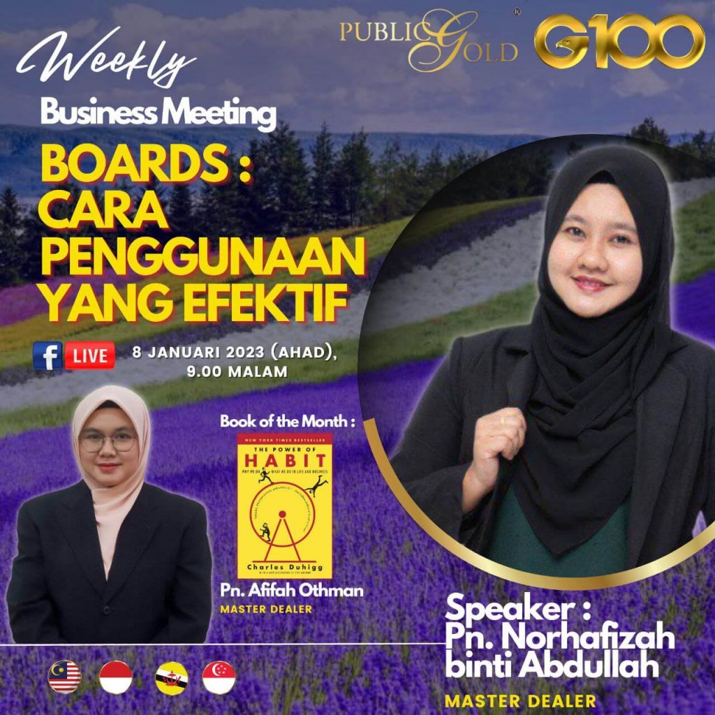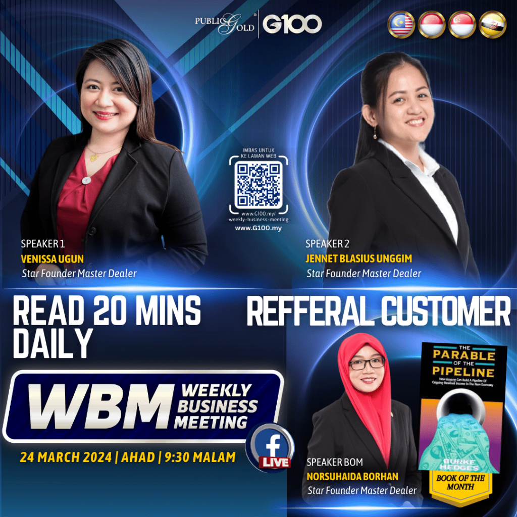 Weekly Business Meeting (WBM) yang diadakan setiap hari Ahad merupakan program latihan mingguan dalam bentuk perkongsian ilmu dan perkongsian update terkini tentang perkembangan bisnes Public Gold.