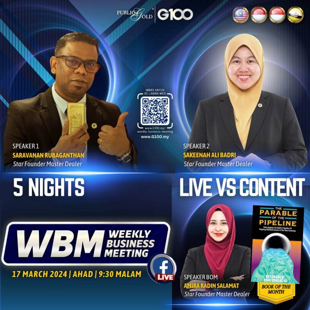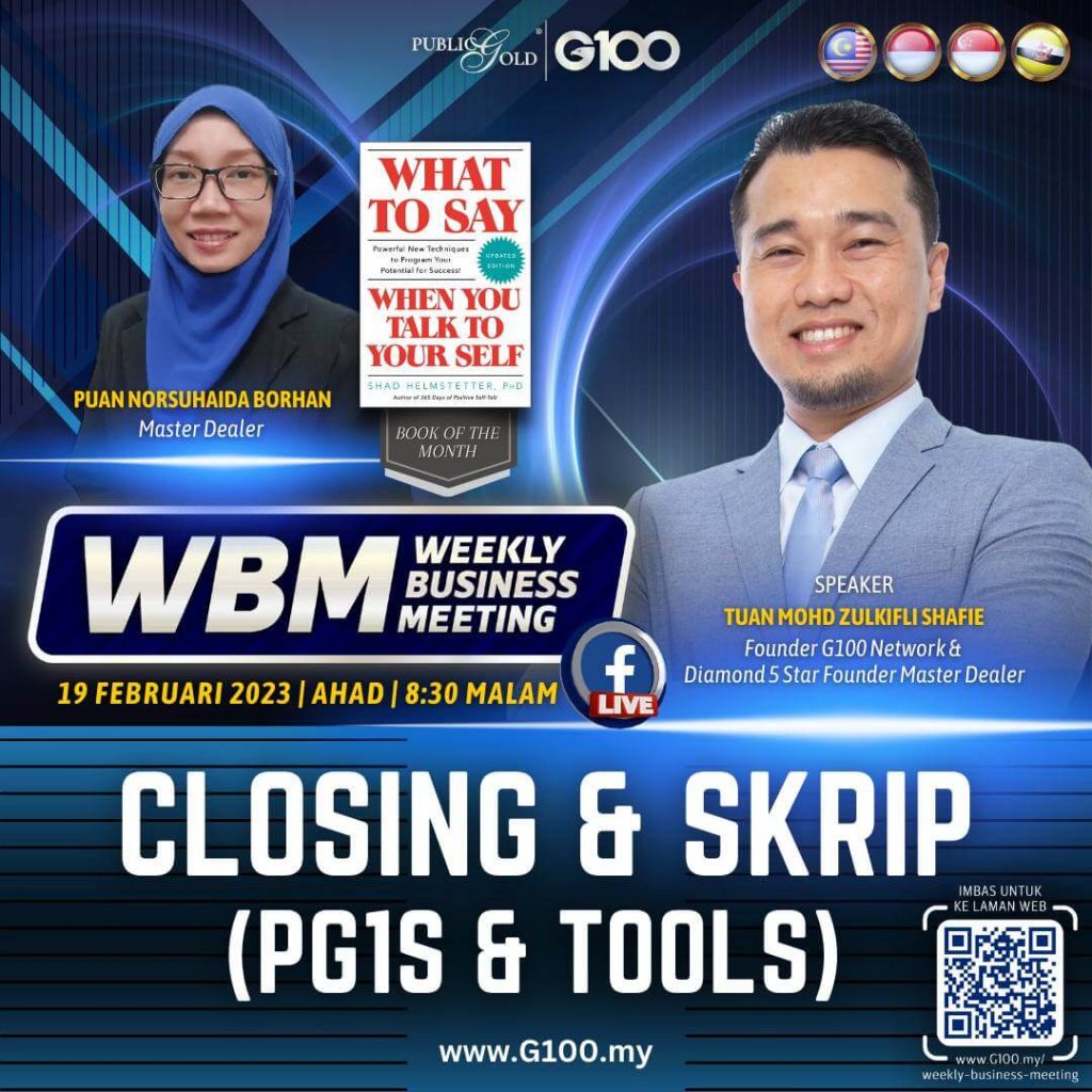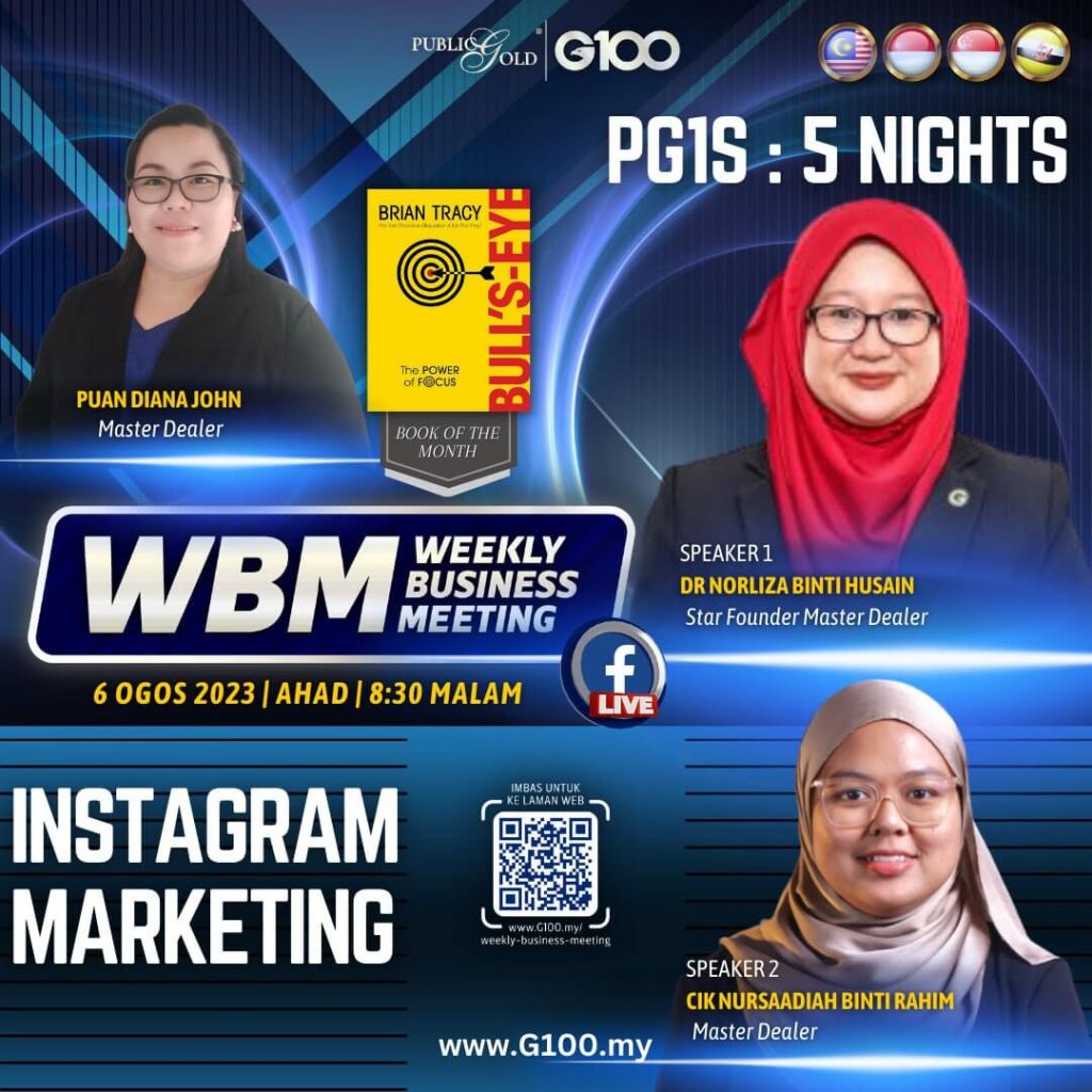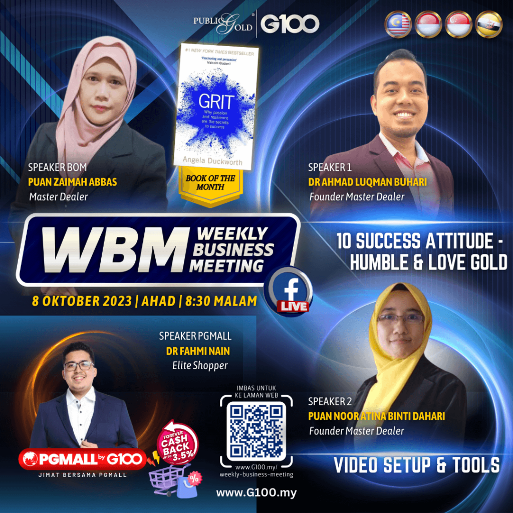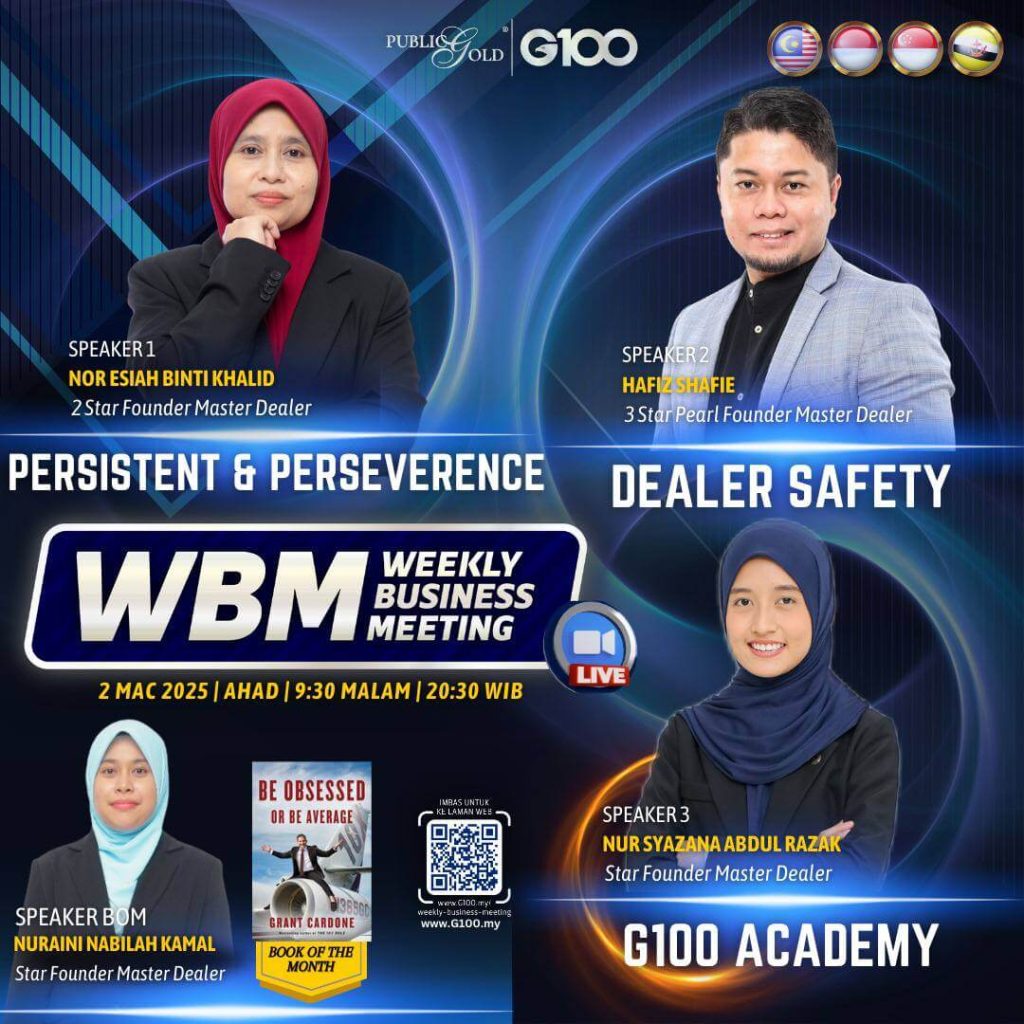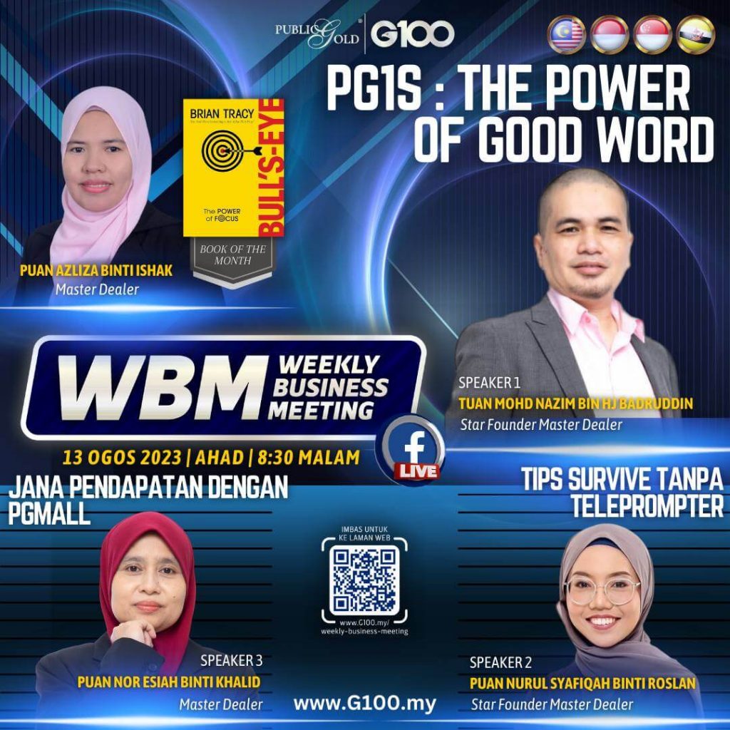Weekly Business Meeting (WBM) yang diadakan setiap hari Ahad merupakan program latihan mingguan dalam bentuk perkongsian ilmu dan perkongsian update terkini tentang perkembangan bisnes Public Gold.