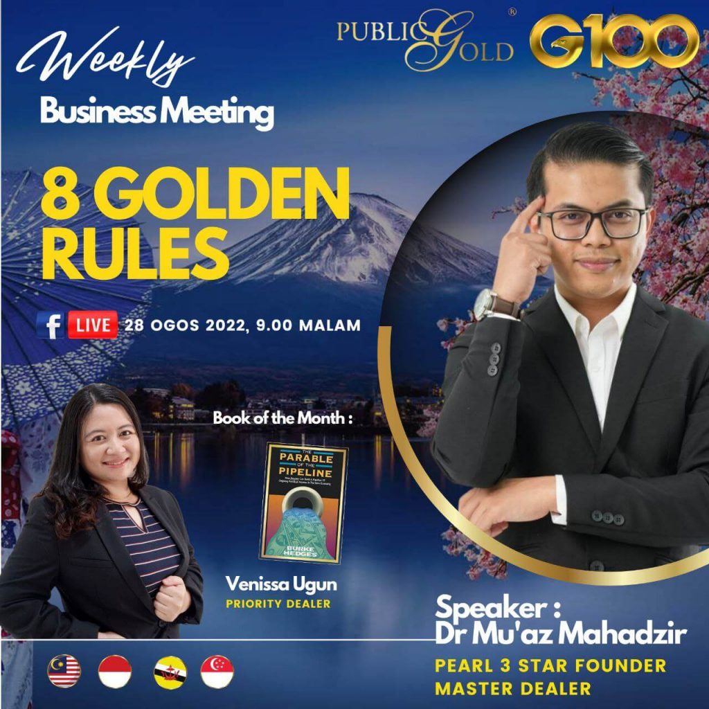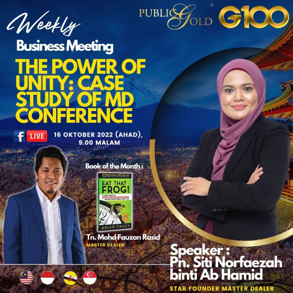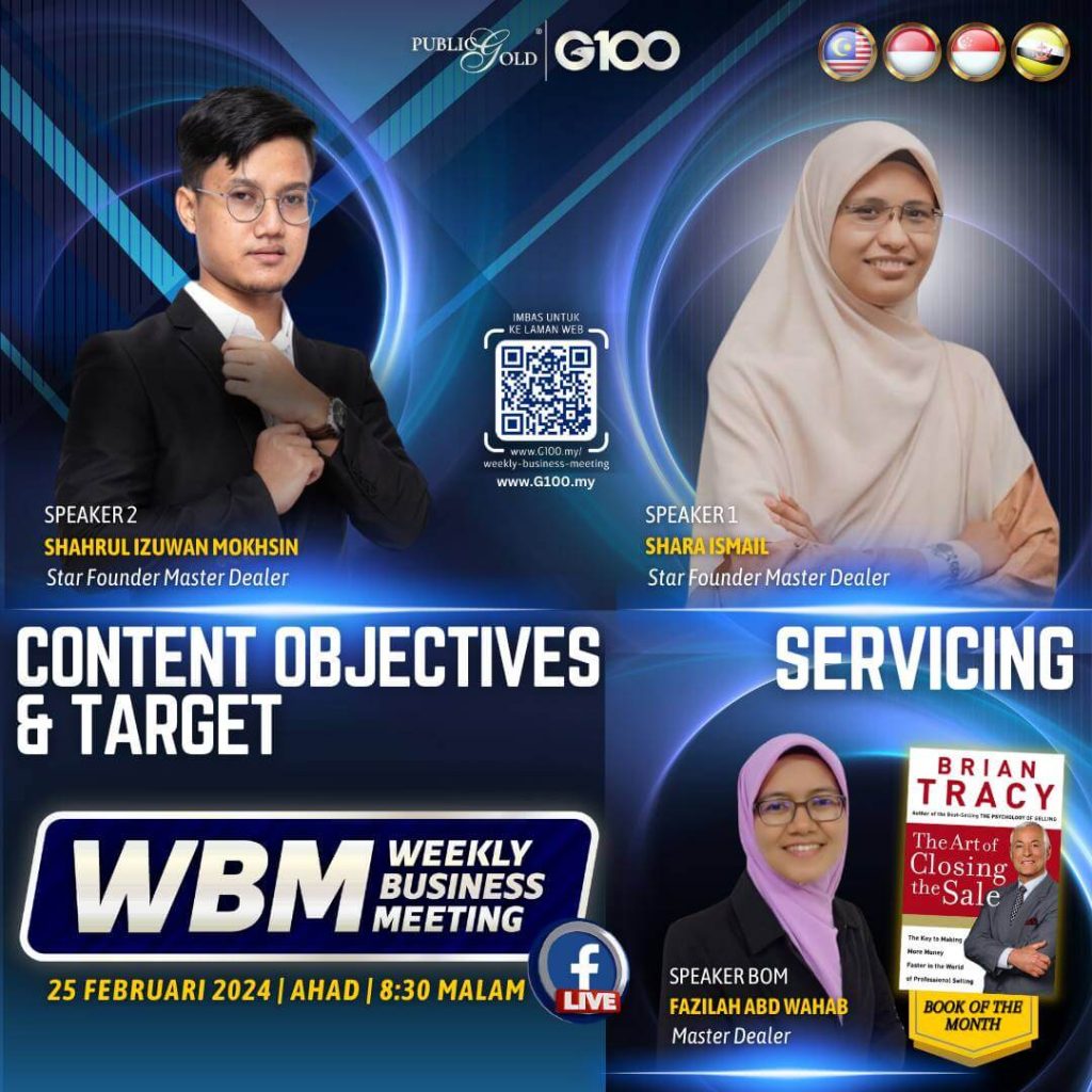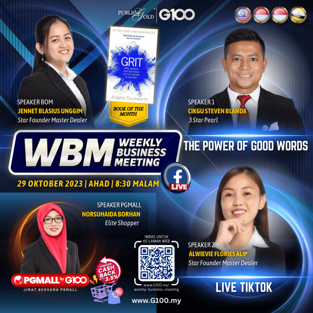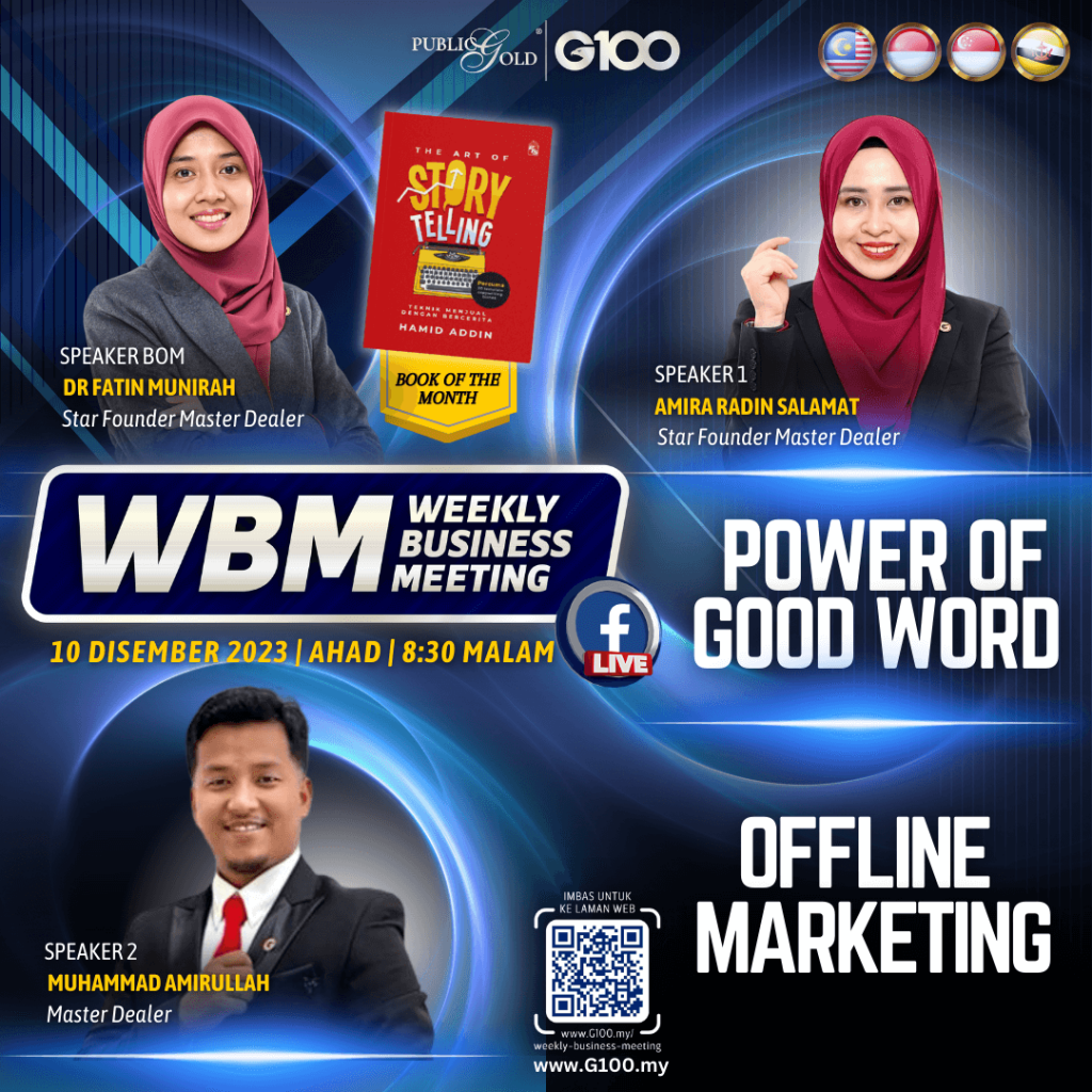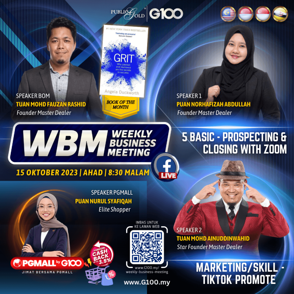 Weekly Business Meeting (WBM) yang diadakan setiap hari Ahad merupakan program latihan mingguan dalam bentuk perkongsian ilmu dan perkongsian update terkini tentang perkembangan bisnes Public Gold.